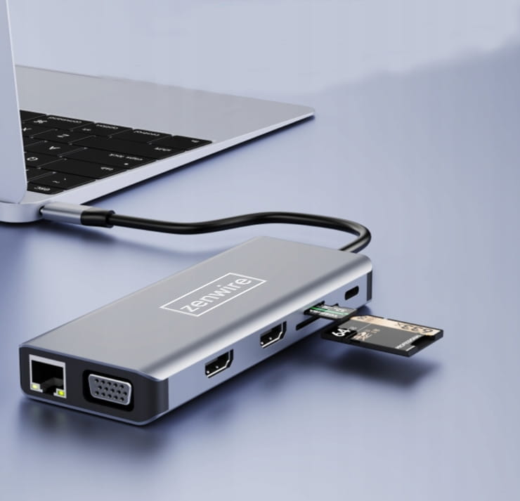 ADAPTER HUB 12w1 USB-C 2x HDMI VGA USB 3.0 Gigabit Ethernet RJ-45 mini Jack SD LAN Zenwire - zdjęcie 1