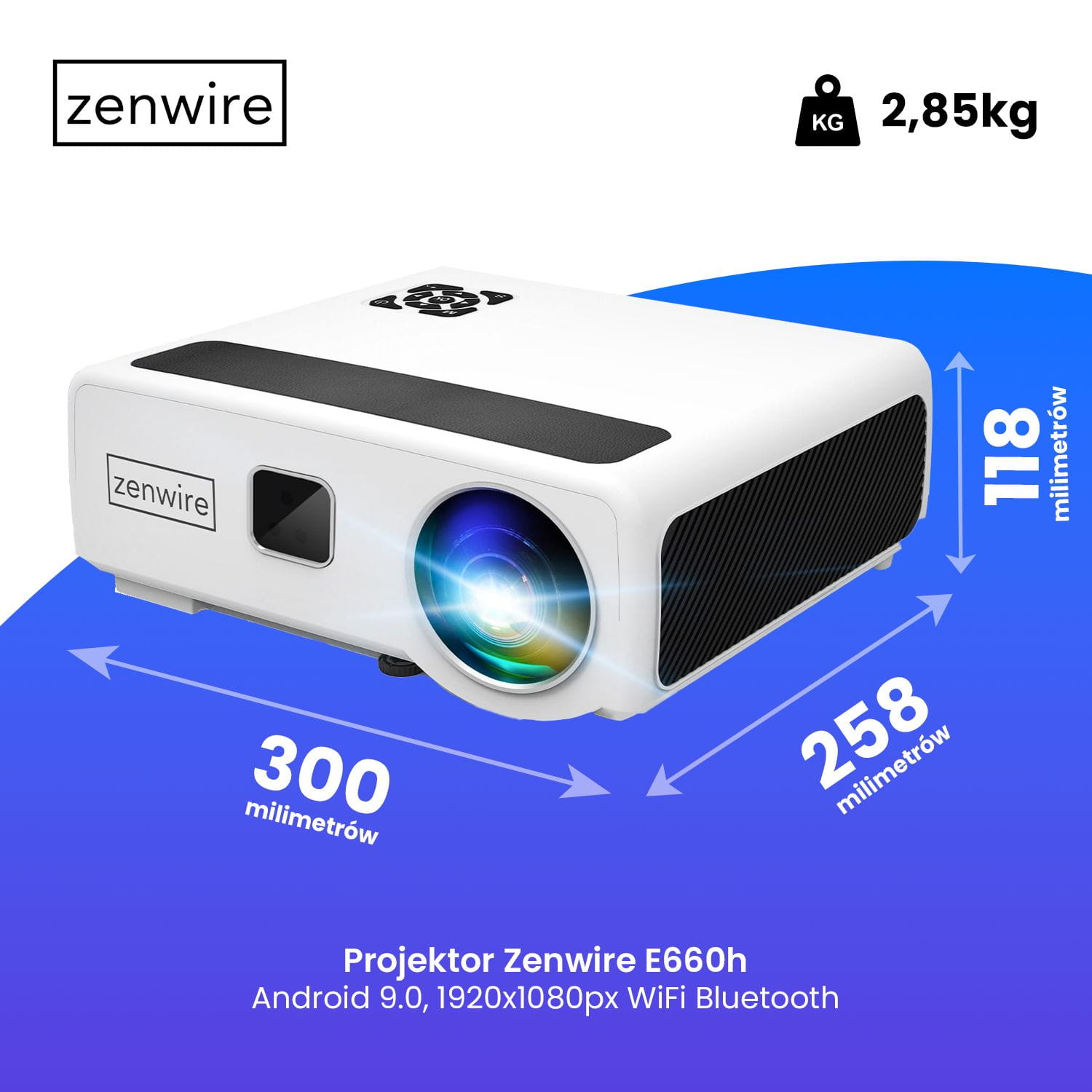 - Zenwire e660h projektors Android 9.0 WiFi 1920x1080p WiFi Bluetooth,